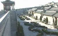 王家大院占据静升镇唯一居高临下的北山坡,背阴抱阳,夏日层峦叠翠,冬日素裹银装,凭高望远,镇中万物尽收眼底。两处大院依沟为界,西片称西堡院,叫红门堡;东片称东堡院,叫高家崖。两片之间跨沟有石桥相连。高家崖建筑群包括二十六座院落,房间二百一十二间,全封闭式。这些院落既成整体又相对独立,院门竟达六十五道之多,令人如入迷宫。