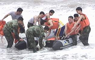 就这样20分钟过去了。此时公安局、海事局、消防局等各部门都赶到了现场,立即组织冲锋舟前去营救,可由于海浪太大,冲锋舟又太轻,一次次冲到海里,结果却被大浪一次次地推回到岸边。岸边的人越发紧张地注视着海里的人。