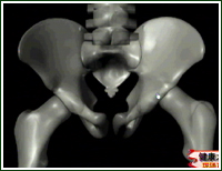 主持人:髋关节脱位后髋关节中到底发生了什么样的改变? 张志刚:髋关节脱位的患者股骨头与髋臼脱离,来看一个模型骨盆的两侧各有一个深窝,医学上称之为髋臼,大腿骨上部球形的部分叫股骨头,正常情况下股骨头是在髋臼窝内,当1-2岁的小孩发生脱位时股骨头仅仅是从髋臼内稍微脱离出来,如果这时不进行积极的治疗,随着小孩逐渐长大和持重活动的增加,脱位的股骨头会向上脱离得越来越远,这时再进行治疗就晚了,从电脑动画和X光片上可以清楚地看到脱位时股骨头与髋臼的距离发生了明显的变化。