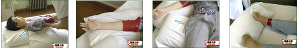 主持人:早期患者不能动时如何帮助病人进行恢复锻炼? 王宁华:早期的卧姿对患者的康复是很重要的,来看一段录象,先用枕头垫住颈部,给患者一个足够的支撑,为了防止肩胛的回缩将另一个枕头放在右肩胛下,肘关节和前臂保持伸展状态,将垫子放在双腿膝关节下这是为了避免下肢形成肌肉性的痉挛,还应该使双脚保持垂直的姿势,避免足下垂的产生。正确的卧姿对于上下肢的要求是不一样的,上肢应该尽量伸展,下肢则应该呈屈曲状。 黄真:如果患者的卧姿保持的与以上要求相反,就会加重以后异常痉挛的模式,也就是误用综合征。