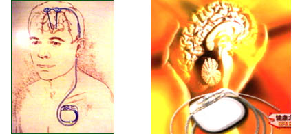 主持人:广东刘女士 目前这种手术开展几年了,做了多少例,国内有哪些医院开展这种手术? 张建国:脑起搏器手术作为一种新的手术方法是近几年兴起的,国外是从87年开始研制的,到现在为止欧美发达国家已经进行了一万三千多例次的脑起搏器手术,国内是98年开始开展这种手术的,到目前为止已经做了150例次,天坛医院是最先引进和开展这项技术的国内医院,另外北京和上海的几家大医院都可以做。 初君盛:脑起搏器从功能和结构上与心脏起搏器有许多相似之处,是通过脉冲电流刺激脑细胞来控制帕金森病症状的,来看一段片子,这是脑起搏器的核心部分即刺激器,植入电极非常细小大约1毫米左右,对脑组织基本没有损伤,来看另一张图,起搏器埋植在胸部的皮下。