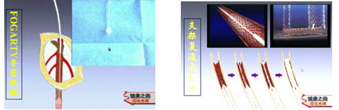主持人:明确诊断为深静脉血栓后应该进行怎样的治疗呢? 包俊敏:临床治疗下肢深静脉血栓有三大类药物1、以溶栓抗凝药物为主的药物治疗方法。2、以取栓手术为代表的传统手术方法。3、腔内支架成型术,这是一种微创的介入疗法。其中药物治疗是用抗血小板的药物来降低血液凝固的可能性,还有就是用溶栓药来溶解已经形成的血栓,条件是血栓必须新鲜,通常是三天内形成的血栓。另外取栓手术也要求血栓形成的时间相对较短。现实的问题是很多患者来就诊时血栓形成的时间往往是比较长的,随着腔内外科技术的发展,出现了髂静脉球囊扩张支架成型术这样一种微创的治疗方法。 景在平:我们称之为支架复通成形术,通常来说就是用一根很细的导丝把血栓打出一个小的通道,然后用支架把它撑开。如图打通血栓后慢慢把支架放开,支架膨胀后就会挤压血栓,从而消除了堵塞。做完内支撑复通成形术后效果是不错的,如图患者左腿静脉完全堵塞,临床上左腿比右腿粗12公分,这是发病两个月后的情况,手术后通过造影看出以前没有通道的地方现在很光滑、通畅,手术后第四天患肢肿胀减少了8公分,到第13天出院时双腿的粗细基本相同了。通过动态造影图也可以很清楚地看出手术的效果。