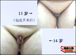 主持人:北京赵女士 我的儿子今年10岁,体重59公斤,小肚子特别胖,1年前做了包皮手术,现在平时外面看不到小鸡鸡,小便时才能露出一点,非常难看,能不能纠正? 雷宇:这是门诊中很常见的问题,来看一张照片,患者第一次做了包皮环切手术后,包皮虽然切掉了,但由于阴茎全部都缩在里面,外观就显得更加难看了,通过再次做矫形手术后,矫正了阴茎的外观,所以单纯性肥胖伴有外生殖器发育障碍的孩子不能单独只做包皮环切,必须还要做阴茎固定整形手术。
