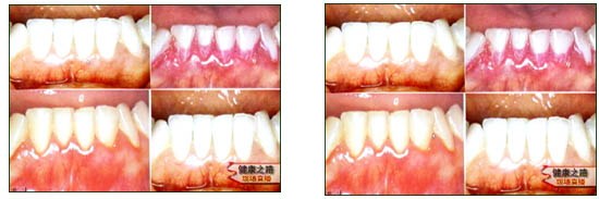 沙月琴:有很多早期症状是可以自己察觉到的如刷牙时出血、吃东西时留下血印、早起时唾液中有血,这时就应该考虑到牙龈炎的可能性,这时照镜子看一下如果牙龈从原来的粉红色变成了红色或暗红色而且牙龈缘变厚,和牙齿已经分开了,就可以肯定是得了牙龈炎了。进一步发展还会有牙齿松动、口腔异味的情况。