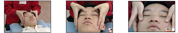 主持人:我们来看一段保健按摩手法演示的小片子: 臧福科:在颈部、头面部的一些结合穴位的按摩方法可以安神定志、清热明目,在脖子上按揉可以解除肌肉疲劳,还要对肩部和后背部进行按揉,因为颈部的肌肉都分布在这里,最后再对胳膊进行按摩。