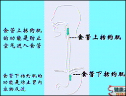 主持人:正常的吞咽动作是如何完成的? 李辉:首先通过一张图片来了解一下食道的功能,吞咽的时候上括约肌首先松弛,下括约肌也相继松弛,食管的体部产生一个连续的、蠕动的收缩,把食团推到胃内,这样就完成了一个整个的吞咽过程。这样一个平时看起来很简单的动作实际上是由一系列精确的动作组成的,任何一个环节出现问题都会引发吞咽困难。如图食管上括约肌的功能是防止空气进入食管,食管下括约肌的功能是防止胃内容物反流。正常情况下都是出于一种关闭状态,在吞咽时先后开放。