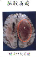 主持人:脑胶质瘤是一种什么样的疾病? 吴念曾:胶质细胞瘤生长在脑部组织里,没有完整的包膜,与正常脑组织呈犬牙交错并且是侵入性的生长,如图红圈中就是肿瘤发生的部位。脑胶质瘤可以发生在脑部的任何部位,如图这是一个脑胶质瘤好发部位示意图,这些部位分布了神经系统里面的主要神经和血管,人得了脑胶质瘤后就会影响到意识状态、肢体活动、语言状态等主要功能。