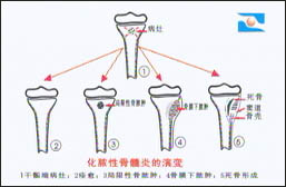 冯峰:一般来说骨髓炎患者都有一个急性发作的病史,可以有一些中毒性的症状如发烧、寒战、脉搏急促、全身乏力等,这些表现有时很明显,局部表现病人有一些红肿热疼,不愿活动,拒绝别人拉动肢体,早期这些病人X线没有阳性的表现,但是2-3周后可以从X光片上明显看到骨膜反应、骨质破坏。慢性骨髓炎患者大多数都有一个急性病史而且这类病人都有一个全身消耗性表现如贫血、低蛋白血症、长期低热,而且病人有时有一些心情郁闷、情绪低沉等心理障碍,局部可以看到骨质有明显的破坏,肢体可以变粗、变细不规则,有时还会引起畸形,这类病人的X光片首先表现的是骨质有硬化、增生,我们要争取在急性骨髓炎期就治疗好,防止进一步发展为慢性骨髓炎,一旦发展为慢性骨髓炎治疗是非常困难的。
