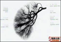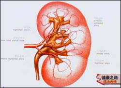 主持人:糖尿病肾病的微循环障碍具体表现在哪些方面? 袁申元:肾脏中有很多肾小球,肾小球是由许多毛细血管组成的,如图放大后可以看到血管有很多微小的支端,分布在肾脏的外层部分,肾脏如果有了微循环障碍自然就会影响到肾脏功能。