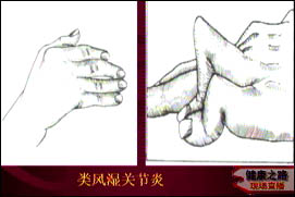 主持人:风湿病有哪些早期表现?如何才能早期发现? 阎小萍:比如前面的患者甲(女性),开始的症状就是出现单关节的疼如肘关节、腕关节等,以后逐渐发展成两个关节对称性的疼痛,由大的关节逐渐发展成小的关节疼痛。这也提示我们绝对不要认为类风湿仅仅是小关节的疼痛问题,当出现了关节疼痛就应该及时到专科医生那里就诊。患者乙(男性)是由于出汗后马上睡觉受了风寒,然后出现了胯关节的疼痛,而且没有在意,以后又出现了腰部发僵。这也提示我们强直性脊柱炎在早期往往出现臀部的深处早期疼痛不要忽视,还有的出现腰部疼痛、腰背发僵,这些都是强直性脊柱炎的早期表现。无论是类风湿性关节炎还是强直性脊柱炎,僵硬不舒是它们的一个共同的症状表现。出现这些情况只有在正规大医院的专科门诊才能得到及时正规的治疗。 王昊:受风寒后并不是都会发病,这与每个人的体质、年龄、性别、遗传因素、内分泌、代谢等都有关系。