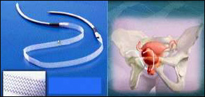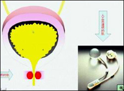 主持人:对于尿道功能障碍应该如何进行治疗? 廖利民:首先对于压力性尿失禁的治疗要遵循循序渐进的原则,也就是从保守治疗入手然后再逐渐过渡到外科治疗。保守治疗方法运用比较多的如收缩肛门实际上是在做一种盆骶功能训练,增加尿道的约束力,这是一种很简单的行为治疗。如果保守治疗没有效果就可以采取外科治疗,外科治疗也要遵循一个由微创到开放的一个过程。首先介绍的这种微创手术是通过膀胱镜往膀胱颈注射填充剂的方法。如图正常情况下膀胱颈是闭合的,尿漏不出来,由于种种病理原因就会使膀胱颈开放。治疗是通过一根注射针然后将一种高分子填充剂打到膀胱颈尿道粘膜下面,使腔隙封闭一些,恢复正常的关闭状态,这样尿液就流不出来了。第二种方法就是我们通常所说的吊带术,这种方法在欧美国家很流行,如图吊带大约1厘米宽,是由一种特殊的纤维编制成渔网状的,在体表切3个小口,然后用穿刺针把吊带放入体内,再把穿刺针剪掉,这样就把下移的尿道托起来了,托起尿道后在增加负压或者打喷嚏、咳嗽时尿就漏不出来了,也就达到了治疗压力性尿失禁的目的。以上两种方法对于治疗轻度和中度压力性尿失禁是非常有效的,对于重度尿失禁即膀胱和尿道括约肌完全不起作用的患者就要采取一种人工尿道括约肌植入术,如图首先来了解一下什么是括约肌,括约肌就相当于水库的阀门,一旦水库的阀门不能关闭了,就要换一个新的阀门--人工尿道括约肌。来看另一张图:括约肌的工作原理比较复杂,简单来说是由三部分组成的,病人在排尿时只要轻轻一按皮下开关,括约肌对尿道的压迫作用就释放了,尿液也会排出。人工尿道括约肌会在3分钟以内自动把尿道扎住,这样尿液也不会漏出来,这样就起到了人体括约肌的功能。