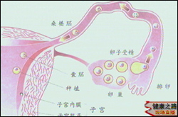 李媛:心理因素直接影响到对病人的治疗效果。 陈子江:不孕症是由于多种疾病或者因素综合的结果,精神因素不是最主要的,很多的女性疾病都可以导致不孕。以下这张图很简单地表述了一个正常的生育过程,其中卵巢是一个非常重要的生殖器官,不仅仅是一个生殖腺,更重要的卵巢是卵子产生的地方,要完成一个正常的生殖过程卵巢应该有一个正常的排卵,卵子和精子在输卵管见面后,如果双方都很正常就可以完成受精过程,受精过程的完成是一个新生命的开始,然后形成胚胎,经过2-3天的运输可以到达子宫,这时如果子宫没有问题就会形成着床,产生一个新的生命。在这整个过程中如果受到了其它因素的影响就有可能无法完成受孕的过程。比如卵巢功能的异常(如多囊卵巢综合症)可能导致不孕,卵子发育不健全也可以导致不孕。