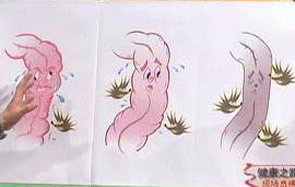 主持人:便秘的人都有哪些不舒服的症状? 傅传刚:这种不舒服的症状有两大类,一类就是以肚子胀为主,不想排便,另一类就是便不出来。长期便秘后由于长时间不想吃东西,哪怕有山珍海味也没有吃的欲望了。另外长期便秘的人脸上会长出一些小豆豆,中医叫做发,脸色不好看,肚子也胀得厉害。很多便秘患者进入厕所后半个小时甚至一个小时以上仍然便不出来。另外便秘患者的大便通常是又粗又硬的,必定损伤肛门,接着就会带来一些肛门部的疾病。由于很多老年人都有高血压、糖尿病等等其它疾病,长时间便不出来是很危险的,比如现在很多脑中风都是在卫生间里发生的。
