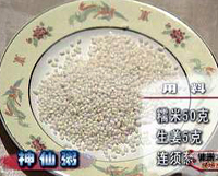 主持人:首先来看一道神仙粥的做法:原料:糯米50克、生姜5克、连须葱7段。把糯米和生姜放入锅内煮20分钟,再放入葱白,煮熟以后加一些米醋,搅拌均匀后就可以吃了。 周文泉:喝神仙粥时一定要喝温热的,不要太凉了。喝到微微汗出的状态是最好的。神仙粥如果能够坚持每天吃一次,若干次后就会具有预防感冒的作用。