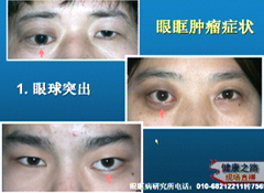 主持人:来听听病人最早的感受:患者甲:"我有十几年的偏头痛历史,疼痛有时放射到左半部,但是一直没有想到是眼睛造成的,医生说我是血管神经性头痛,这种病妇女比较常见,这次查CT才偶尔发现了。"患者乙:"头有时发晕、发木,下地以后以为是中暑了,没有在意,原来一直怀疑脑部有瘤子,后来检查出是眼睛的问题。"患者丙:"我眼皮看起来有一点肿,平时爱流泪,有时头有点发胀。"患者丁:"孩子眼睛在四岁时动了一次手术后就一直肿着,感觉一直在长,视力也在逐渐下降。" 宋国祥:一般良性肿瘤如果不积极治疗最终会导致视力丧失,不仅视力丧失而且外观是很难看的,严重影响生活质量。如果是恶性肿瘤后果就会比较严重,早期进行综合治疗还有机会治愈,如果耽误了治疗时机就会影响生命。