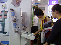 这次展会的门票上,都有一个小小的条形码。可别小瞧这个条码,观众在购票时被要求填写一些个人资料,之后工作人员将资料收入计算机,然后就用这个条码作为记忆代码。每进一个展厅,只要用仪器轻轻一扫,观众的各种分类统计就会存储在仪器中,展会后,所有场内的观众资料就会快速清晰地显示在组委会的计算机屏幕上。