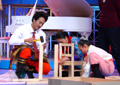 请三个家庭的成员当场组装一套小桌椅,以完成的先后顺序定输赢。