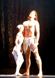 古典剧目与现代舞的完美结合在大剧院的表演现场,鼓点象是一只捕捉灵魂的手,巴乌的声音哽咽着,猛然间是锣的觉醒,舞台上的人却在痛苦里挣扎。小希律王的继女,巴比伦的公主--莎乐美想要求得先知约翰的爱,而他却这样无情。她轻轻靠在约翰的胸口,希望寻找温柔的爱情,却不想那心中的人儿只知道昂起高傲的头,她屈下膝低下头,她甚至热情地拥抱他,而他依旧无情地挣脱了她的怀抱。