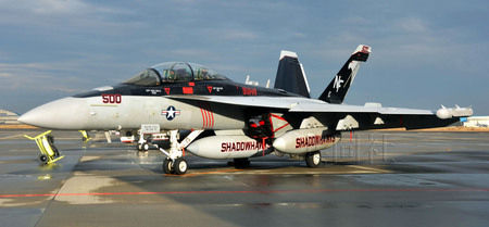 ¡¡¡¡3ÔÂ24ÈÕ£¬×¤ÈÕÃÀ¾üÔÚÉñÄδ¨Ïصĺñľ»ùµØÕ¹Ê¾ÁËв¿ÊðµÄ×îÏȽøµç×ÓÕ½»úEA-18G¡££¨¹²Í¬É磩