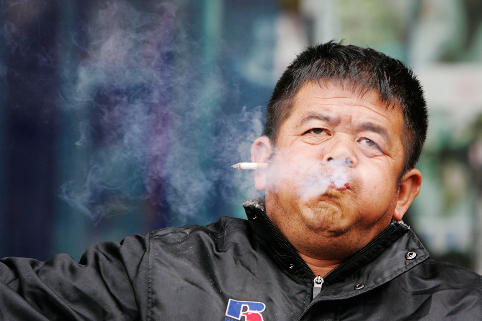 2007年2月25日,一名自称“白天醒”的流浪汉在上海七浦路表演耳朵“吸烟”。 CFP