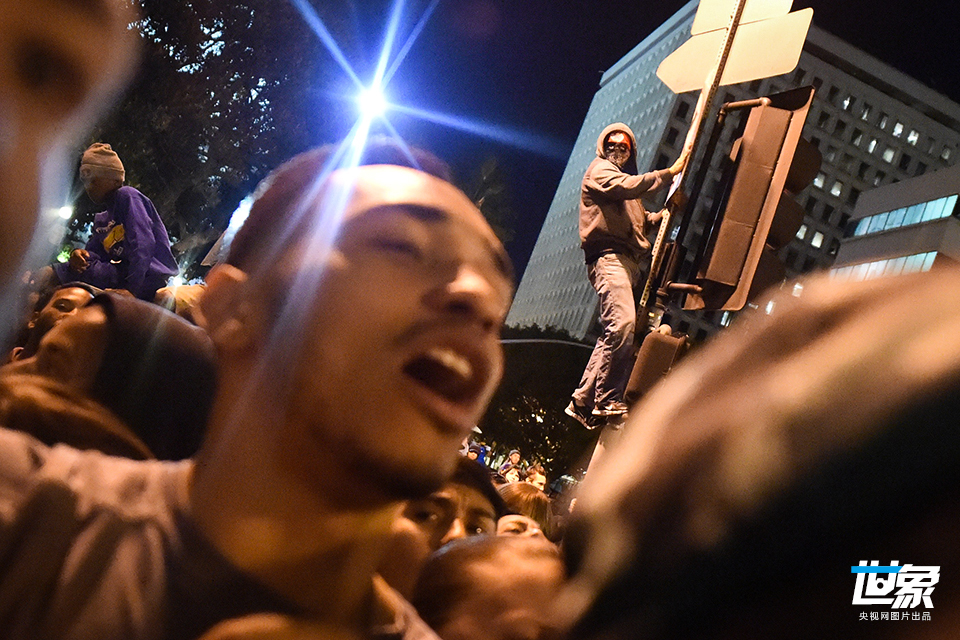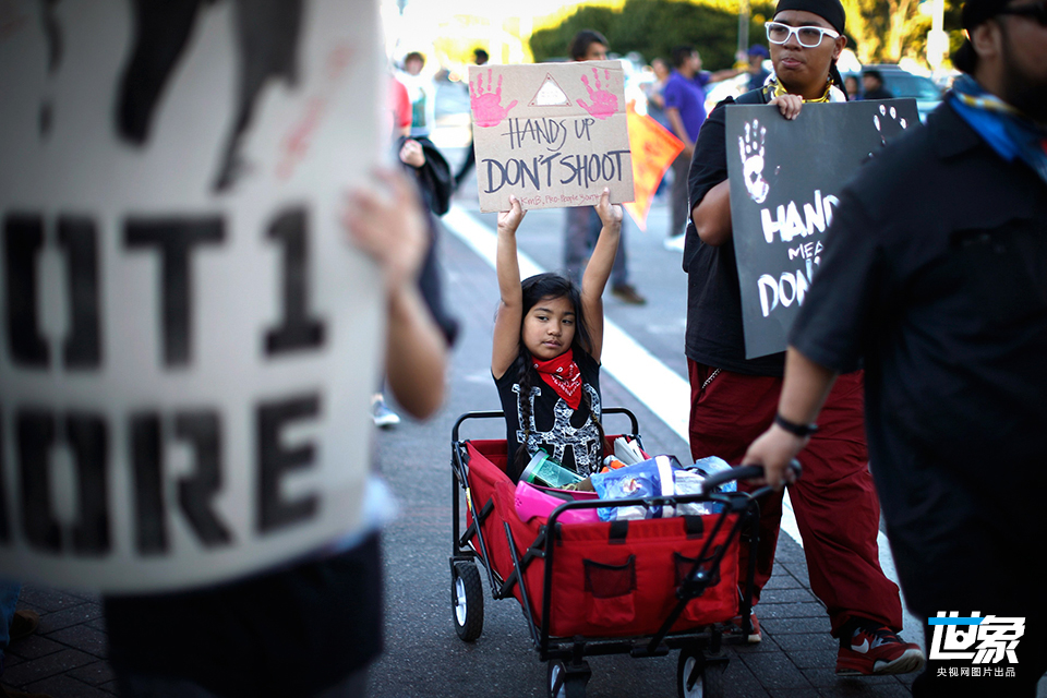 当地时间2014年11月25日,美国洛杉矶,示威者游行抗议。 ROBYN BECK/CFP