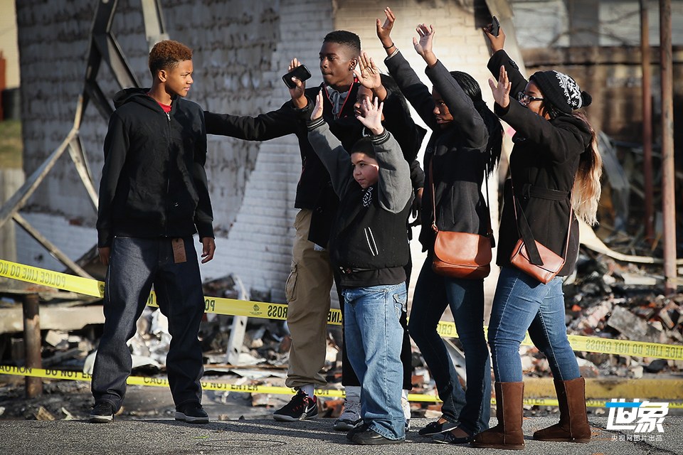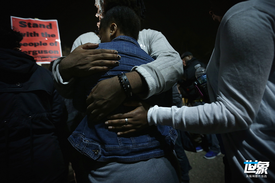 当地时间2014年11月28日,美国弗格森,弗格森骚乱持续,民众悼念遭警察枪杀的非裔青年布朗。 Scott Olson/GettyNorthAmerica/CFP
