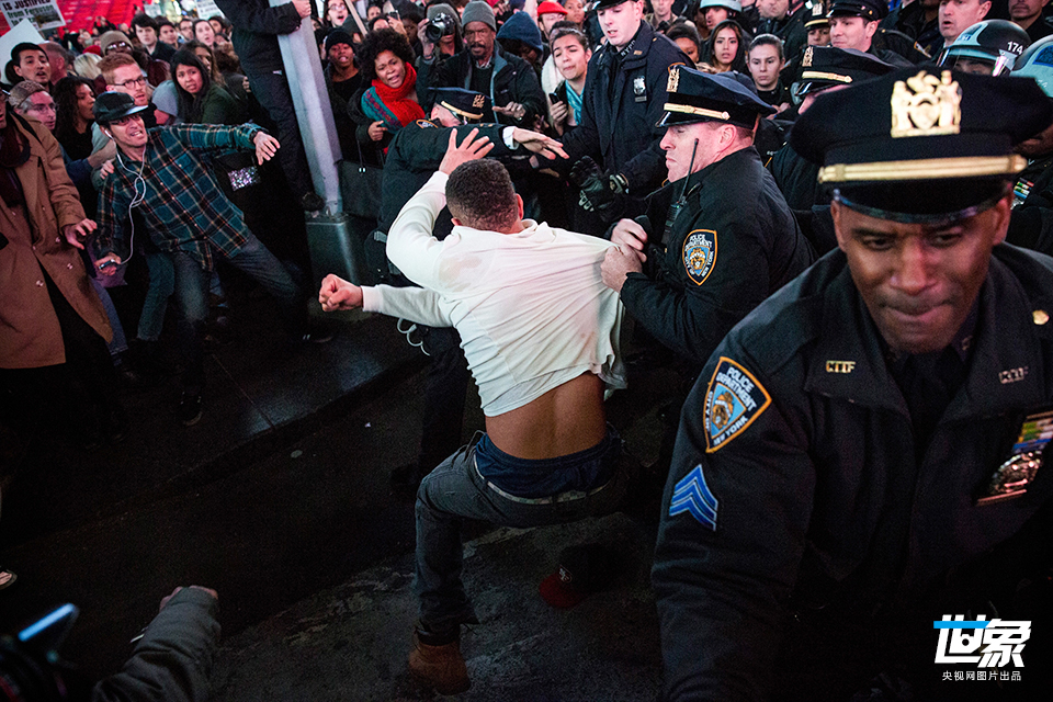 当地时间2014年11月25日,美国纽约,警察试图拘留一名示威者。CFP