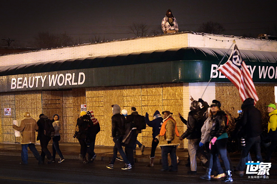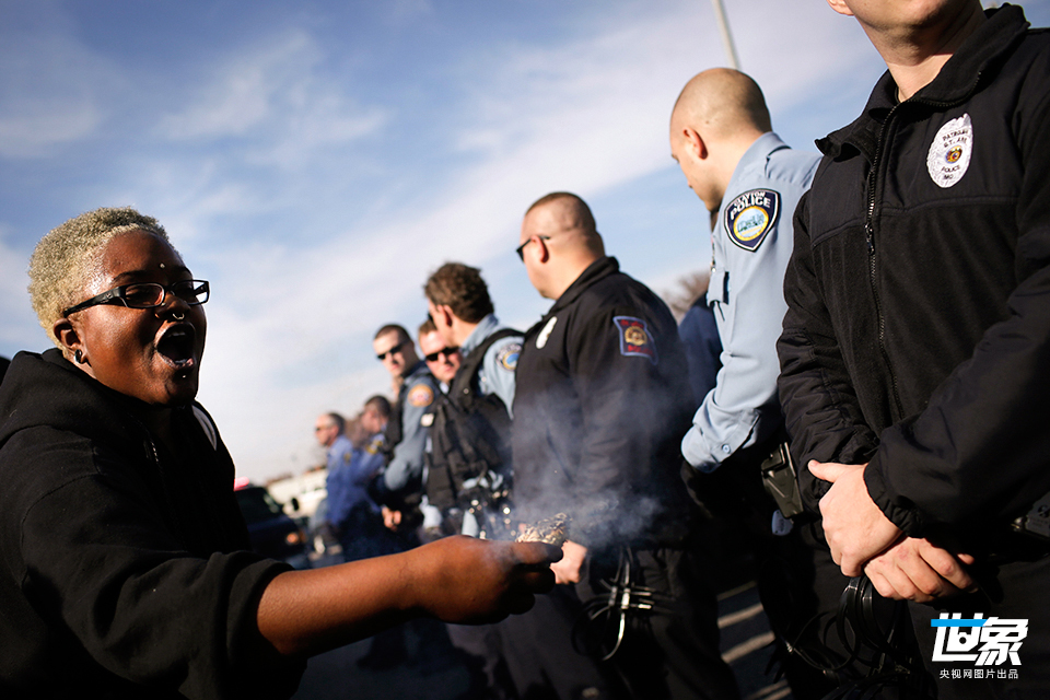 当地时间2014年11月26日,美国弗格森,民众持续示威抗议。 Robert Cohen/Polaris/CFP