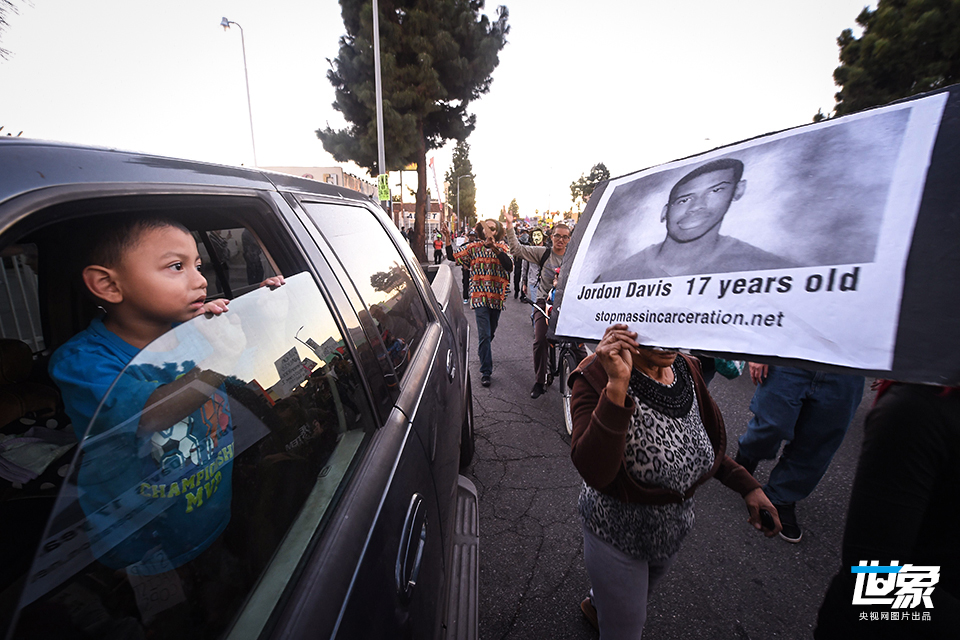 当地时间2014年11月25日,美国洛杉矶,游行队伍中的示威者。 CFP