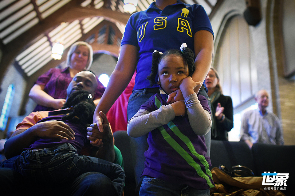 当地时间2014年11月27日,美国弗格森,弗格森骚乱持续,会众在教堂内听道,度过感恩节。 JEWEL SAMAD/CFP