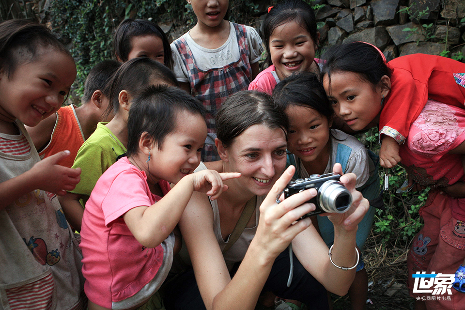 2011年8月23日,在广西融水苗族自治县大年乡高僚村牙腊苗寨,法国人玛琳在为贫困女童照相时几个女童好奇地围着观看。玛琳是法国“中国色彩协会”大年办公室负责人,从事扶助贫困少儿上学工作。毕业于法国一家大学中文系的玛琳一到大年就融入了苗族生活,她喜欢穿“解放鞋”和苗布裤子,喜欢吃当地的苗菜。除每年回法国过一次圣诞节,并不时到北京、上海、香港等地筹集资金外,玛琳大多时间行走在大苗山深处的山道上,在广西和贵州的苗家侗寨走访。 龙涛/CFP
