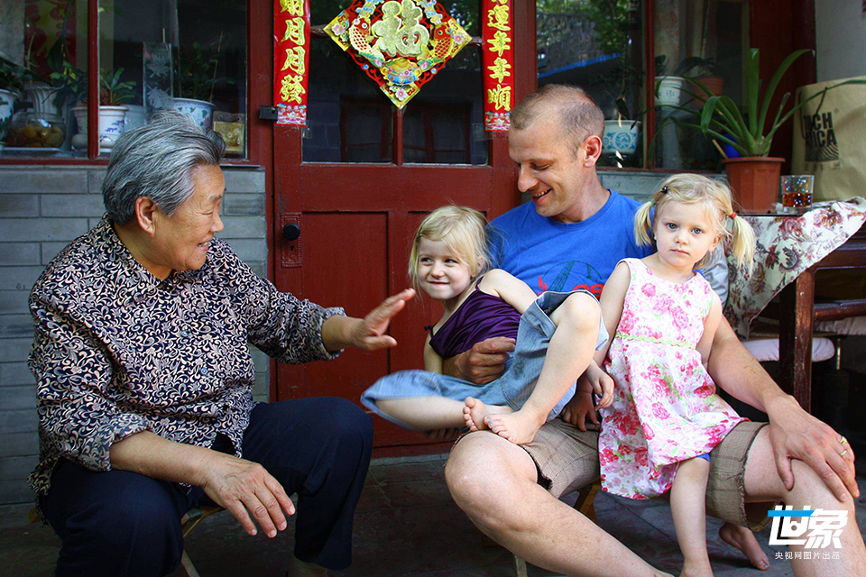 江森海是出身英格兰贵族家庭的英国人,他给自己起的中文名字是“江森海”。江森海到过世界上40多个国家,但他最后留在了北京,在北京找到了创作灵感,在南锣鼓巷开了一家“创可贴”丅恤衫店,将他眼中北京历史文化特有的符号作为图案设计成丅恤衫,深受中外顾客喜爱。邻居刘大妈亲切称他为“院儿里美美她爸”,他喜欢和街坊聊天儿,多年的和睦相处用刘大妈的话讲“远亲不如近邻,近邻不如对门”。 张居生/CFP