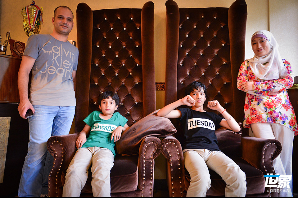 2014年6月6日,义乌市区稠州北路“花”餐厅,穆罕奈德一家人在一起。在义乌的12年间,穆罕奈德有了自己的贸易公司,事业蒸蒸日上。两个儿子12岁的刘飞翔(中文名)和9岁的刘义飞也在义乌出生现在义乌读小学。穆罕奈德说,他在中国的生活很开心,当地生活方便,中国的、阿拉伯的朋友都很多。他最近打算在义乌买房子,正式安定下来。 吕斌/CFP