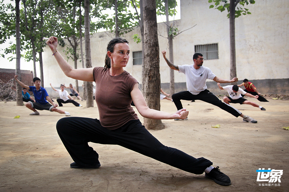 2013年6月23日,在河南省焦作市温县陈家沟,莎婼在一个农家武馆练习太极拳。两年前,英国姑娘莎婼慕名来到太极拳发源地——河南省焦作市温县陈家沟,拜师学习陈式太极拳。“太极拳很神秘,有魅力,既是武术又是文化,既健身又养生,每天练拳感觉不同,学太极很有意思。”已经能用汉语交流的莎婼说着带有温县方言韵味的普通话。她说,练太极拳已经成为她生活的一部分,她准备长期在中国做外教、学太极。 徐宏星/CFP