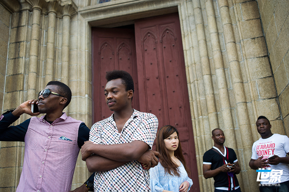 2014年7月13日,广州,周日礼拜后圣心大教堂门口的非洲信徒。上世纪90年代末,第一批非洲人来到广州,将廉价的中国商品运往非洲销售。之后,越来越多的非洲人涌入广州,形成了全亚洲最大的非洲人聚居区。 Dave Tacon/Polaris/CFP