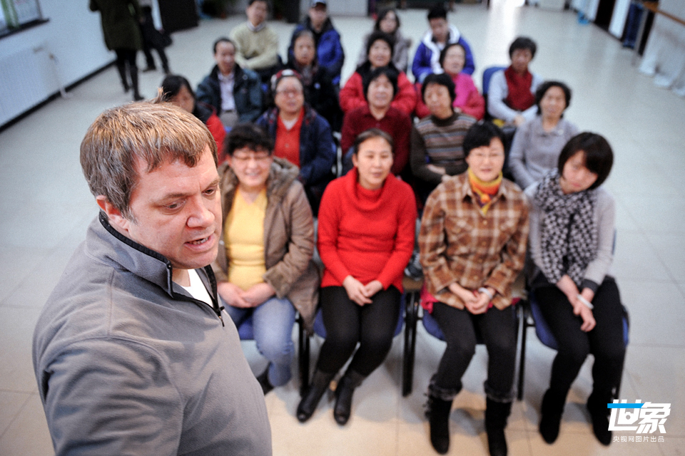 2013年3月2日,北京,来自美国的国际志愿者白云龙和往常一样来到他居住和工作的北京朝阳区三里屯街道,为社区居民们义务教授英语。白云龙从2008年北京奥运会就开始在社区义务为居民教授英语,居民都喜欢他,称他 “我们的白老师”。白云龙常说,我在北京很幸福,要永远做一个光荣的社区志愿者。 CFP