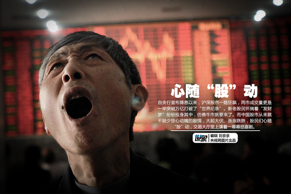 自央行宣布降息以来,沪深股市一路狂飙,两市成交量更是一举突破万亿打破了“世界纪录”。新老股民怀揣着“发财梦”纷纷投身其中,仿佛牛市就要来了。而中国股市从来就不缺少惊心动魄的剧情,大起大伏、涨涨跌跌,股民们心随“股”动,交易大厅里上演着一幕幕悲喜剧。