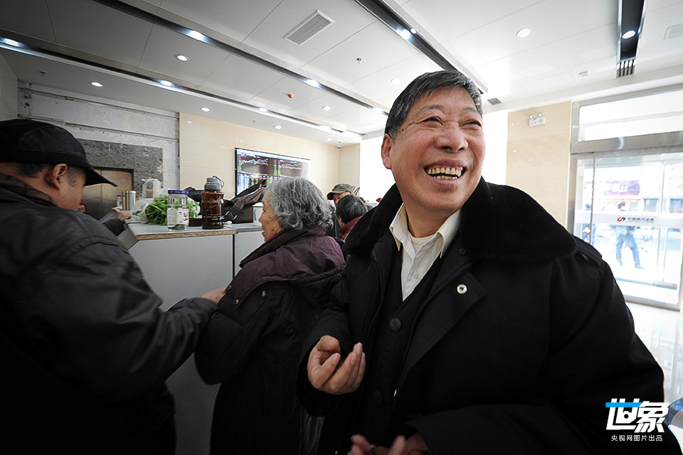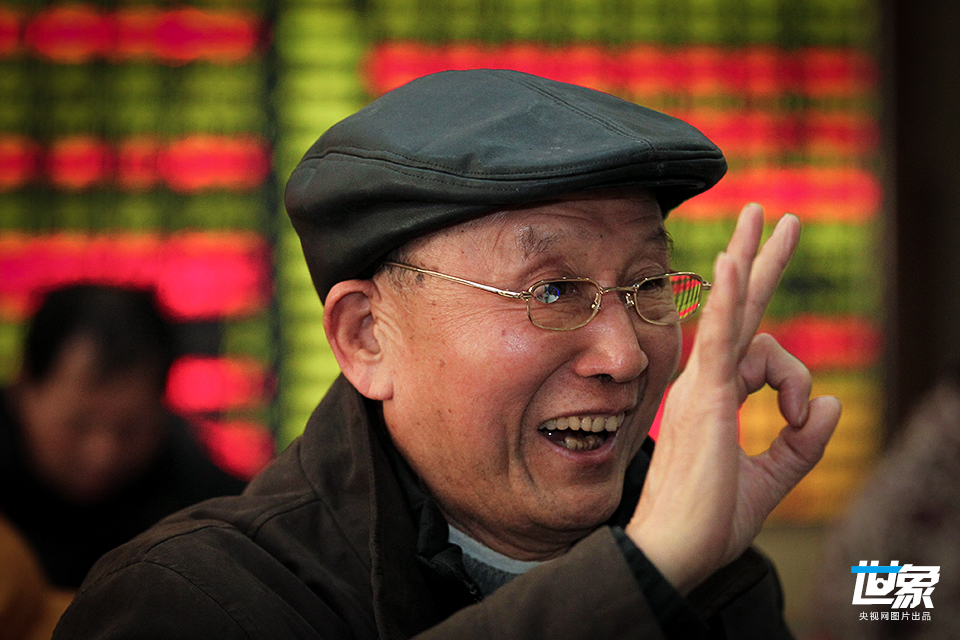 2014年12月8日,一位关注股市行情的股民在江苏南通一证劵营业厅满面笑容做出了3000点的手势。当日沪指大涨2.81%站稳3000点,两市延续天量,成交量近万亿。 许丛军/CFP