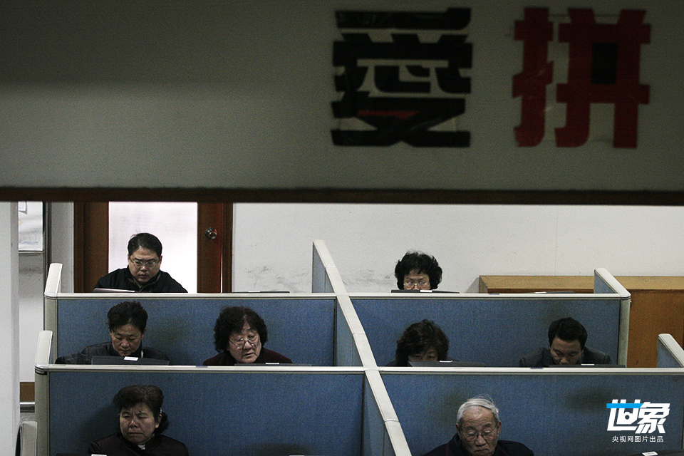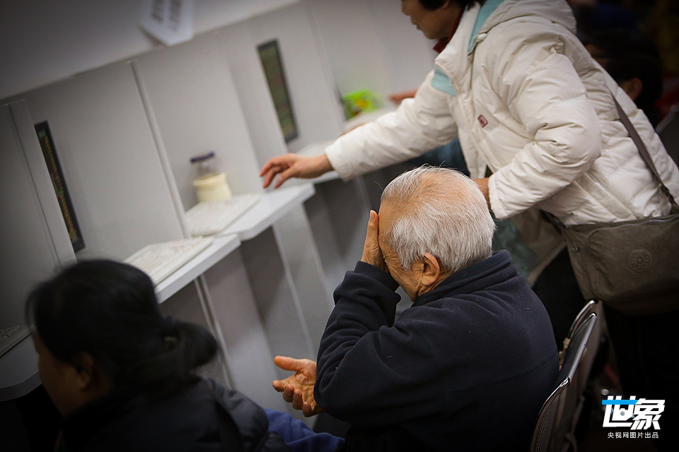 2014年12月15日,安徽省淮北市,股民在某证券营业部内关注股市行情。 CFP