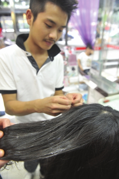 7ÔÂ20ÈÕ£¬³É¶¼Èý¹ÙÌÃÒ»Àí·¢µê£¬·¢ÐÍʦÕýÔÚ´òÀíÐìŮʿ±»Í¿Á˽ºË®µÄÍ··¢¡£