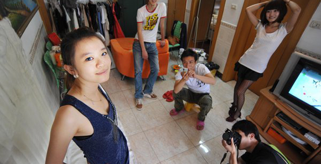 21岁的曹梦璇是安徽合肥一所高校即将毕业的学生,一个偶然的机会,被网店老板选中成为网模。当网络模特的门槛并不高,网友将这类模特称之为“麻豆”。和广州上海等一线城市相比,目前合肥网模的收入不是很高,从几元到上百元不等。网店林立,网上商品琳琅满目,“麻豆”们通过展示自身魅力来展现商品魅力,吸引“眼球”,使得网上购物成为一种愉悦的消费体验。(摄影 王从启)