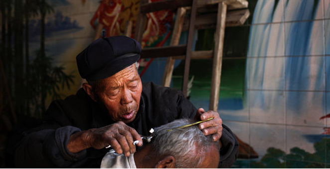 2010年3月22日,石家庄,赵占兵老人剃头入行71年,正如电影《剃头匠》里的主人公一样,老赵几十年如一日地为他的老主顾们服务,但脸上少了寂寞,多了平和,只要不刮风下雨闹天,他都去赶集开张。现在老赵的主顾已不是太多,剃头手艺也渐渐淡出人们的视线。被遗忘的时光,不摇曳的身影,老赵,也许是石家庄市剃头行业最后的一位坚守者。