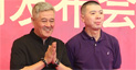 • 总导演冯小刚(左)携手副总导演兼语言节目总监赵本山亮相发布会现场。