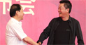 • 发布会现场,策划团队中的赵宝刚(右)和张和平(左)握手。