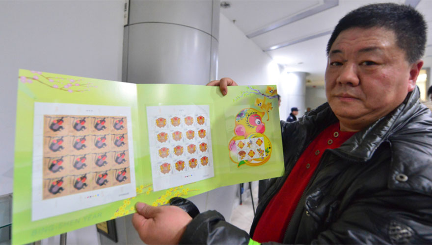 2016年1月5日,上海,中国邮政《丙申年》猴年邮票开始发售。早晨6点多,虹口邮政支局门口,不少邮迷通宵在此排队购买,7点左右就已经销售一空,排在第一位的邮迷唐先生从2015年12月29日就在此排队,排了整整8天7夜,并在邮局跨年。邮局方面为他们提供了热水小板凳,并在当晚开放了营业大厅供他们休息。