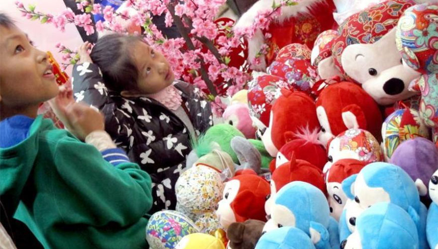 1月11日,北京商家推出的可爱卡通猴受到小朋友青睐。