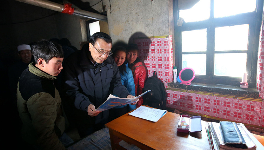 李克强1日到宁夏固原西吉县半子沟村看望特困村民王进宝一家。了解到王家大女儿为照顾卧病母亲辍学,上初二的儿子立志当医生为母治病,总理说,你们要加倍努力,对得起姐姐付出。希望搬迁后更好的环境,能让你们妈妈看病方便,姐姐也有机会重返校园。