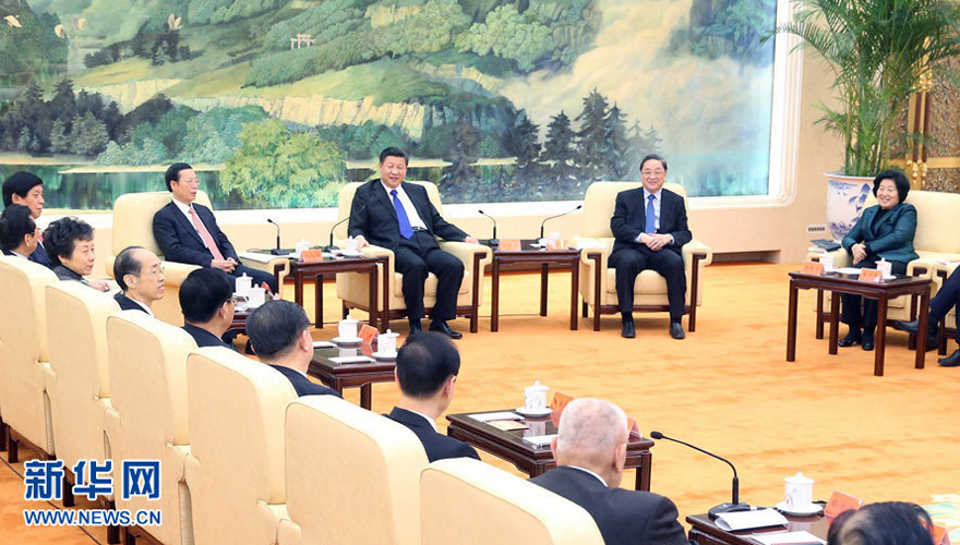 1月29日,习近平、俞正声、张高丽等在北京人民大会堂同党外人士欢聚一堂,共迎新春。