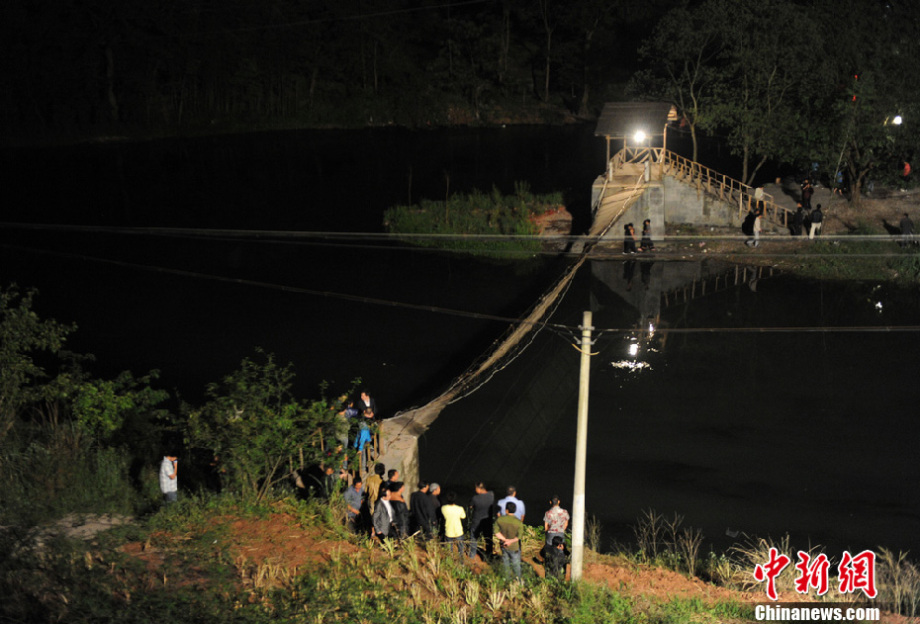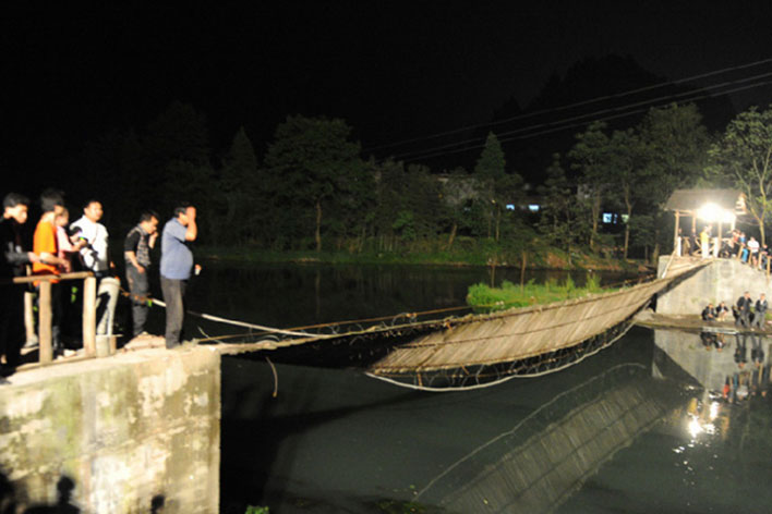 1日晚9:10分左右,湖南凤凰县桃花岛一篝火晚会跨河吊桥因受力桥墩断裂,出现桥面倾斜,从篝火晚会散场的游客经过吊桥时落水。 [详细]