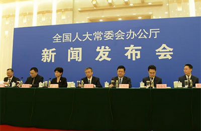 12月27日下午,十二届全国人大常委会第十八次会议闭幕后,全国人大常委会办公厅在人民大会堂台湾厅召开新闻发布会,全国人大常委会法工委、国家卫生计生委、国家反恐办等有关部门负责人,就新通过的反恐怖主义法草案、反家庭暴力法草案、国家勋章和国家荣誉称号法草案、人口与计划生育法修正案草案等有关问题回答记者提问。